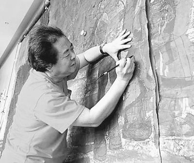 王宏剑在创作《楚汉相争·鸿门宴》。 资料图片