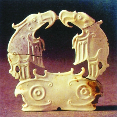 湖北天门市石家河遗址出土的虎座双鹰玉饰