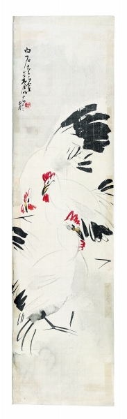 林风眠《鸡图》,1931年,166.5×44cm,北京画院藏