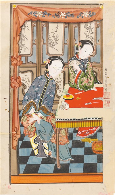 例如印制于清康熙时期的《四艺雅聚》《太白醉酒》《四季平安》,雍正时期的《加冠仕女图》《叶戏仕女图》,乾隆时期的《百花公主》《韩湘献篮》《五福三星》,嘉庆时期的《暖香坞雅制春灯谜》《时迁盗甲》《游园惊梦》《呼丕显下边庭捉拿潘美》《打龙袍》,以及道光时期的《庄稼忙》《福寿平安》等,都是现有存世的孤本。
