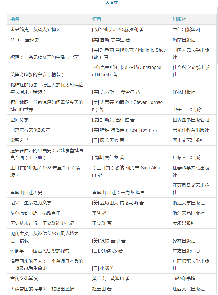 2017年1月 百道好书榜