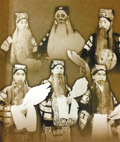 谭鑫培、谭小培、谭富英、谭元寿、谭孝曾、谭正岩演出《空城计》剧照合图。