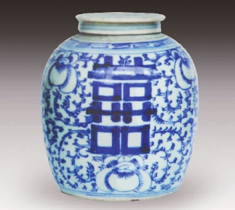 狮子窑青花喜字坛
