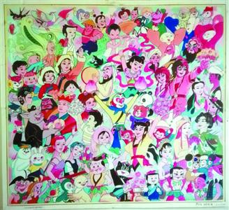 ▲2016年,严定宪在北京大学生电影节上。新华社图片 金良快 摄 ◆严定宪夫妇的画作,美影厂历年来的知名动画角色齐集一堂。