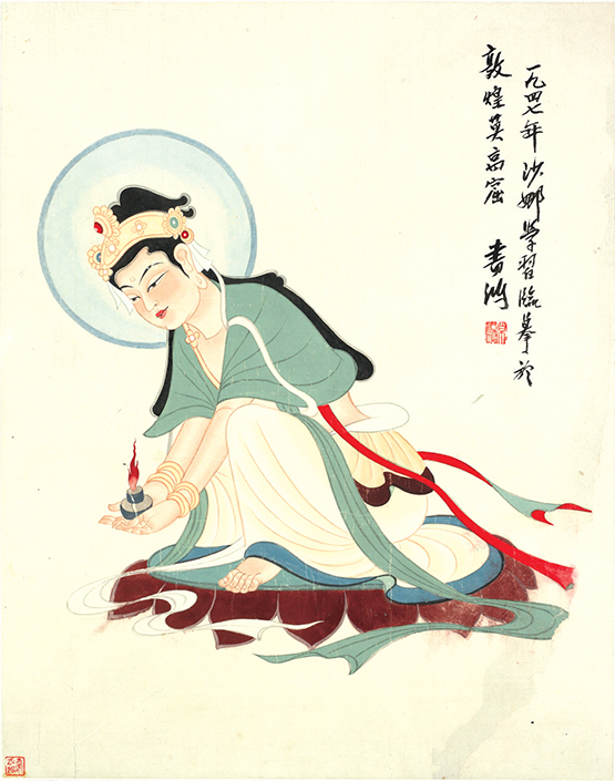 我在少年时代(1943年)就跟随父母常书鸿、陈芝秀在敦煌莫高窟开始了特殊的学习经历,跟着前辈们在洞窟内学习临摹壁画,练就了临摹的“童子功”。1951年,我有缘在父亲影响下,在北京清华大学营建系,留在梁思成、林徽因身边,得到对传统工艺美术发展设计的启蒙,开发北京景泰蓝的新设计,与敦煌图案元素相融合,从此决定了我终生从事装饰设计和教学的事业。