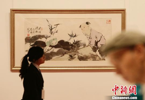 资料图:范曾作品《荷塘清趣》亮相世界华侨华人美术书法展。中新社发 李慧思 摄