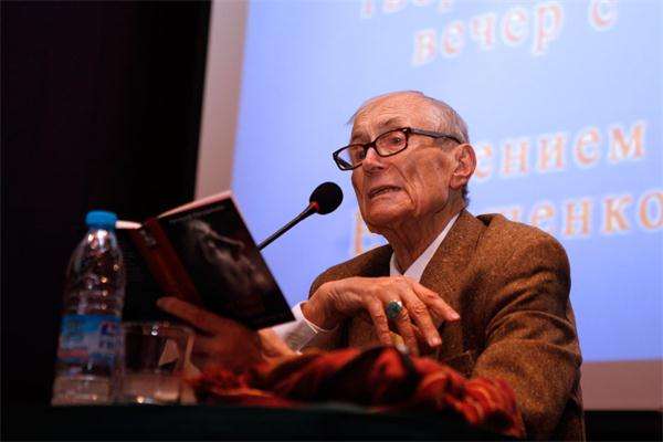 11月16日,在首师大为叶夫图申科举办的诗歌电影晚会上,我这样介绍叶夫图申科:“他或许是所有健在的俄语诗人中最具世界性影响的人,作为‘响派’诗歌最突出的代表,他和他的诗歌在上个世纪六七十年代风靡全苏联,享有当今的歌坛天王天后们才享有的名头,他在卢日尼基体育场的朗诵会有数万听众,他站在敞篷汽车上朗诵,成千上万的人向他欢呼,向他致敬;他到过世界上91个国家,他的诗被翻译成数十种文字,他在俄罗斯被视为‘活着的经典’,‘俄语诗歌的大使’;其次,他或许是当代俄语诗人中与中国渊源最深的人,早在1985年他就访问了中国,是在改革开放后最早访问中国的苏联作家之一,他在国际俱乐部的朗诵,他与中国诗人的见面,都在当时的中国诗歌界、乃至文学文化界产生巨大影响,掀起了一场‘叶夫图申科热’。”“叶夫图申科先生有一句名言:‘诗人在俄罗斯大于诗人。’他自己就是这句话的范例,从广义上说,他不仅是一位诗人,也是一位文化活动家,社会活动家,是20世纪下半期俄苏政治文化史中的一个历史人物;从狭义上说,他不仅是一位诗人,也是一位电影导演、演员、小说家、评论家、翻译家、摄影家等等。”晚会上,叶夫图申科在诗歌朗诵环节之后又亲自为电竞竞猜讲解他执导的影片《幼儿园》。