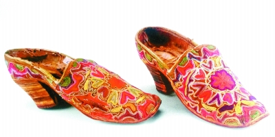 由布皮面料合成的清代维吾尔族绣花高跟女鞋,新疆博物馆藏。