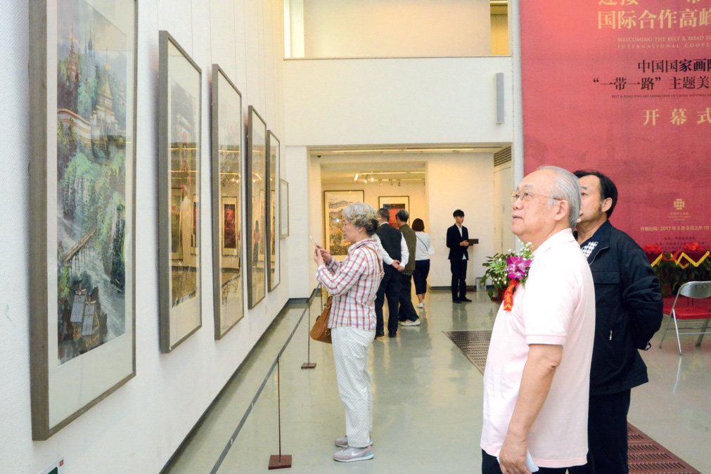 为迎接“一带一路”国际合作高峰论坛,中国国家画院主办的“一带一路”主题美术作品展5月9日至16日在中国国家画院美术馆举行。本次展览展出以“一带一路”为主题的美术作品112件,其中国画71件,油画11件,版画20件,公共艺术10件,既有“一带一路”沿线地区的写生、速写作品,也有参与选题创作的初稿、创作作品等,涵盖国画、油画、版画、公共艺术多种类型,展示了国家画院研究员参与“一带一路”国际美术工程的阶段性成果,是一次汇报展,也是对论坛的献礼。