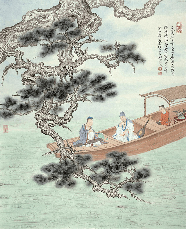 《清溪浅水行舟》的构图遵从传统中国画亦开亦合的布局,画中一树偃松垂下,两名高士携一名童子乘扁舟而行。作品细节生动逼真、一丝不苟,彰显了艺术家的高超技法和虚实结合的绘画理念,不仅展现了古人的精神状态,也表达了作者对当今现代人生活状态的哲思。主办方表示,此次“一幅画的展览”是其推广中国艺术家及其作品的新形式。画展将通过关注佳作的创作者、绘画技法、原材料、印章及这些元素背后的故事,从不同视角展现艺术家的风采。