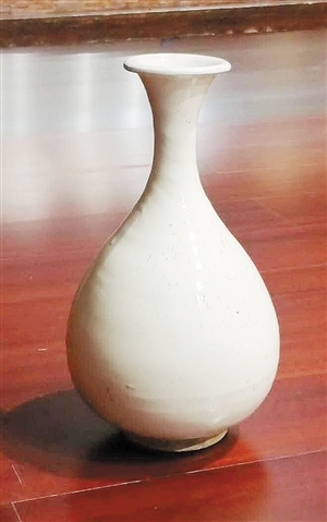 文物专家刘涛认为,这是一件非常完整、釉色清亮的玉壶春瓶,“根据其款型、釉色和质地,可以断定为元代制品。”刘涛介绍说,“玉壶春瓶”又称“玉壶赏瓶”,是中国瓷器造型中的一种典型器形。流行地区广,沿用时间长,宋以后历代各地窑场均有烧制。“它的造型是由唐代寺院里的净水瓶演变而来。基本形制为撇口、细颈、垂腹、圈足。它是一种以变化柔和的弧线为轮廓线的瓶类。这种瓶的造型定型于宋代,历经宋、元、明、清直至现代。”刘涛说。