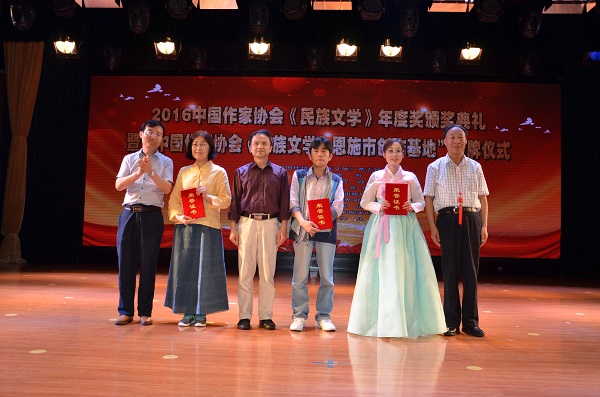 6月3日,2016《民族文学》年度奖颁奖典礼暨“电竞竞猜官网《民族文学》恩施市创作基地”授牌仪式在湖北恩施举行。活动由民族文学杂志社、中共恩施市委、恩施市人民政府主办,旨在促进少数民族文学创作,组织作家深入生活、扎根人民,更好地发挥文学期刊的引领和服务作用。