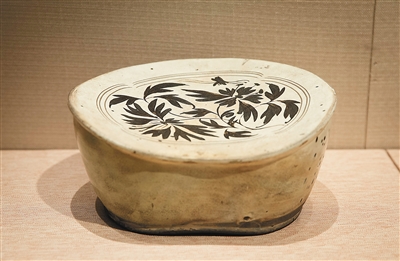 磁州窑白釉褐彩腰形枕。