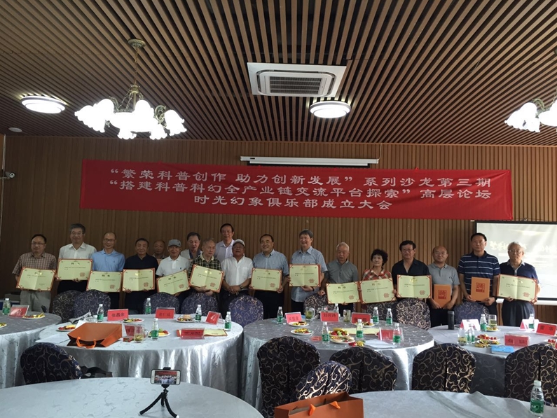 2017年6月25日,由中国科普作家协会主办、成都时光幻象文化传播有限责任公司承办的“搭建科普科幻全产业链交流平台探索”高层论坛——“繁荣科普创作 助力创新发展”系列沙龙第三期暨成都时光幻象俱乐部成立大会在成都温江时光幻象公司娱乐部——楚天印象酒楼举行。
