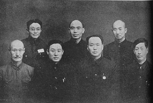 出席新中国第一届政协会议的内蒙古自治区的全体代表,前排右一为朋斯克。资料图片