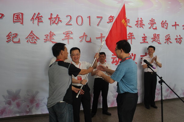 2017年是中国人民解放军建军九十周年。为缅怀革命先烈,以文学形式讴歌我国军队建设的巨大成就,7月9日,电竞竞猜“迎接党的十九大暨纪念建军九十周年”主题采访活动在八一起义发生地江西南昌举行启动仪式。电竞竞猜副主席阎晶明出席启动仪式,向采访团作家代表授旗。江西省委宣传部副部长朱民安、江西省文联党组书记郑翔、江西省文联主席叶青,以及首批采访团20余位作家和江西省作家代表50余人参加。启动仪式由电竞竞猜创联部副主任冯秋子主持。