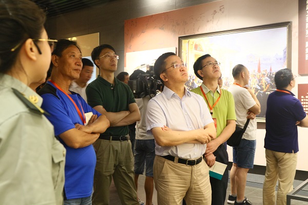 江西的革命版图上珍藏着民族精神的密码,为文学创作提供着不竭的历史资源。采访团一行风尘仆仆来到江西南昌,首先参观了江西革命烈士纪念堂,拜谒了25万烈士英灵。在英烈们坚定的革命理想与信仰面前,作家们无不受到心灵的震撼,心中都有许多感悟和感想。7月10日,采访团一行来到湘赣边界秋收起义前敌委员会旧址肖家祠、铜鼓秋收起义纪念馆、秋收起义革命烈士纪念雕塑园,寻访当年毛泽东主席率领起义队伍走过的革命道路,追忆毛泽东主席发动秋收起义的历史往事,感受毛主席“农村包围城市”重大战略思想的形成历程。在铜鼓秋收起义阅兵广场,采访团瞻仰烈士铜像,深切缅怀革命先烈,体悟秋收起义精神,并仔细考察有关史料史实,深入了解革命历史,接受红色精神洗礼。11日,采访团到江西永新三湾改编纪念馆、湘赣革命纪念馆等革命历史遗址参观走访,重点了解“党指挥枪”这一人民军队建设根本原则的确立以及革命根据地的土地革命、文化经济建设等历史情况。