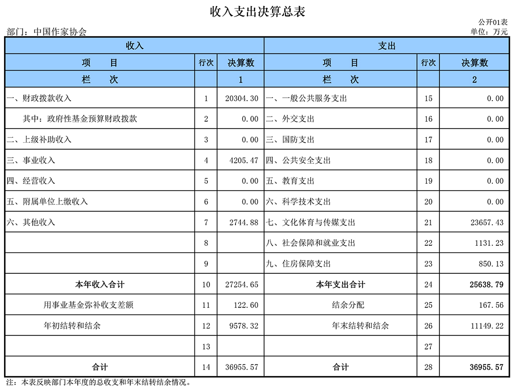 一、收入支出决算总表