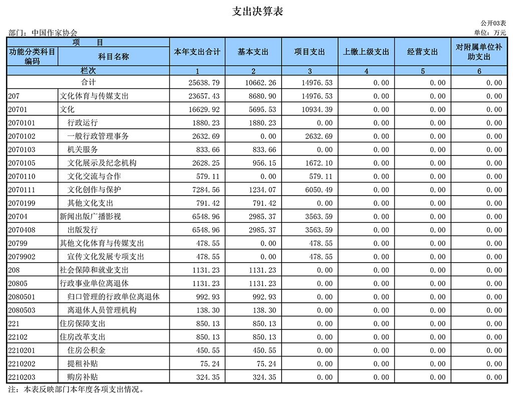 八、文化体育与传媒(类)文化(款)一般行政管理事务(项):指电竞竞猜本级组织作家深入生活等各项支出。