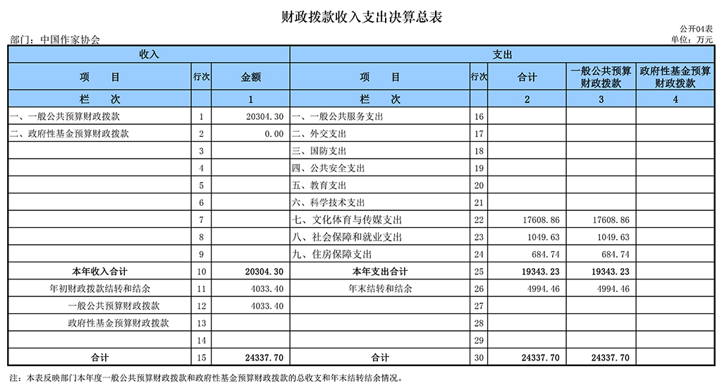 四、财政拨款收入支出决算总表