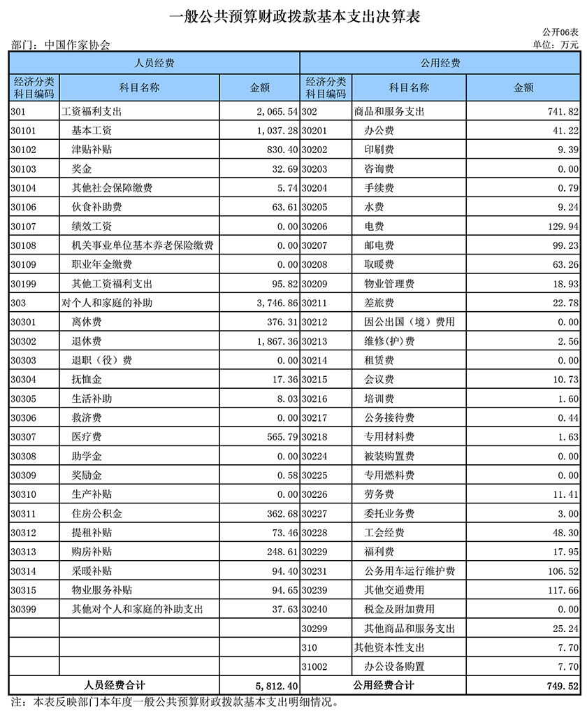 六、一般公共预算财政拨款基本支出决算表