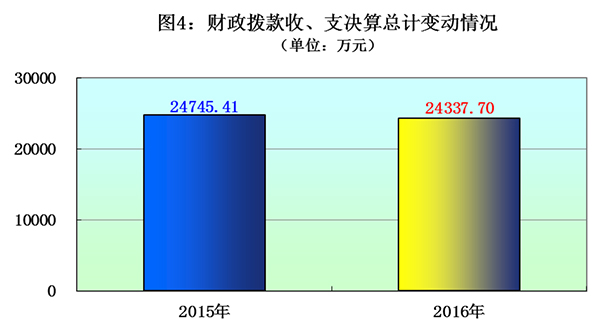 电竞竞猜2016 年度财政拨款收支总决算24337.70万元。与 2015 年相比,财政拨款收、支总计各减少407.71万元,下降1.65%。