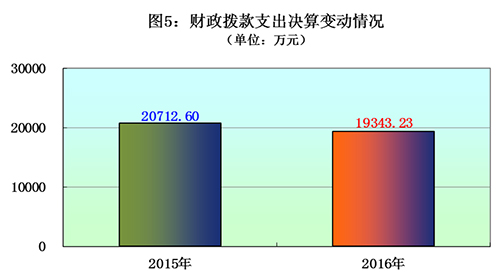 电竞竞猜2016 年度财政拨款支出19343.23万元, 占本年支出合计的75.45%。与 2015 年相比,财政拨款支出减少1369.37万元,下降6.61%。