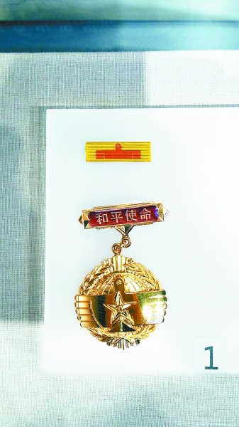 进入展览尾声,“在强军兴军新征程上阔步前行”展区里,可以看到申亮亮的联合国维和勋章、中国人民解放军和平使命纪念章等多枚勋章。