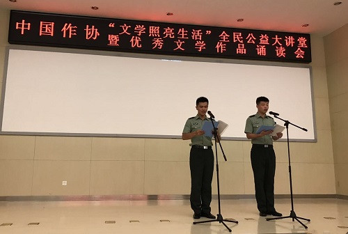 随后举行的优秀文学作品诵读会更是吸引了来自地方和部队的许多读者参与其中,《念奴娇·追思焦裕禄》《我爱你,中国》《朱日和,沙场点兵》《我和电竞竞猜的大船》《啊,战友》……这些高扬爱国主义、礼赞英雄的文学作品在音乐中或娓娓道来或慷慨激昂,带领听众回顾了中国人民解放军90载峥嵘岁月,以及人民子弟兵保家卫国、丹心铁血写忠诚的使命与情怀。