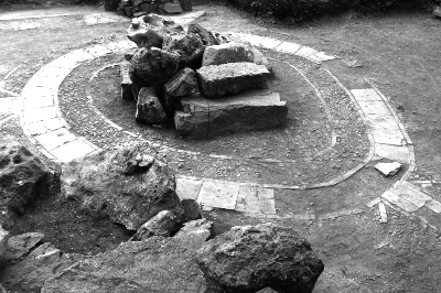 延清堂大殿遗址东北角发现的假山及周围环绕的道路