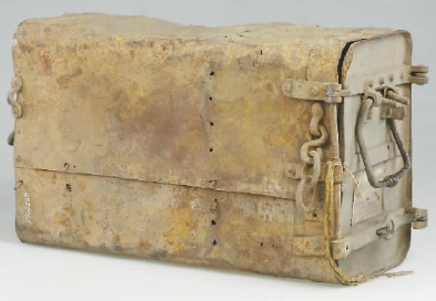 [人民战争]中国人民解放军素以能征善战著称于世,在为建立新中国而奋斗的革命战争年代,开国元勋们运筹帷幄,领导和指挥中国人民解放军经过英勇斗争,最终赢得了民族独立和人民解放事业的伟大胜利。这部分展示内容中既有毛泽东、朱德、贺龙等人在战争年代使用的随身武器;也有显示军队统帅运筹帷幄,灵活机动地指挥完成战略、战术任务而使用的军事地图;还有战斗胜利后印发的一份份捷报、收缴的一件件战利品,如1941年11月,八路军在黄崖洞保卫战中缴获日军的炮弹箱(图三)。