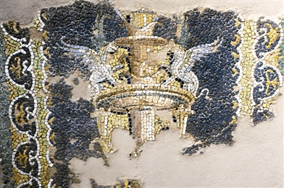 眼前漂亮的马赛克镶嵌画,来自哪里呢?皮皮亚诺山上的宁芙庙。宁芙庙是希腊罗马时期一类特殊的建筑,起源于有泉水或溪流的洞窟。后来演变为一种有喷泉、雕塑、花草壁龛的花园,既被用作祭祀宁芙女神之地,也被视为休闲之地或举办婚礼的场所。1980年至2001年期间,那不勒斯考古管理局在对马萨卢布伦塞地区的考古挖掘中发现了这座罗马宁芙庙,该庙或许是卡帕尼亚地区迄今发现的保存最为完好的宁芙庙。它坐落在皮皮亚诺山上一个雄伟壮丽的位置,与卡普里岛遥遥相望。庙墙由灰色的卡帕尼亚凝灰岩块堆砌而成。后侧的墙被分割为十二个壁龛,中央瀑布的两侧各分布有五个,瀑布中则有两个半圆形小壁龛,整个墙体饰有各种玻璃、埃及蓝石灰石和彩色石灰石的马赛克图案,不同区域使用贝壳隔开。壁龛的装饰呈对称格局,以中央瀑布为中间线,左右对应,主题是一座百鸟争鸣、百花怒放的花园,描绘了飞禽、走兽、海怪、树木花卉等形象。