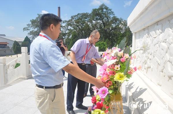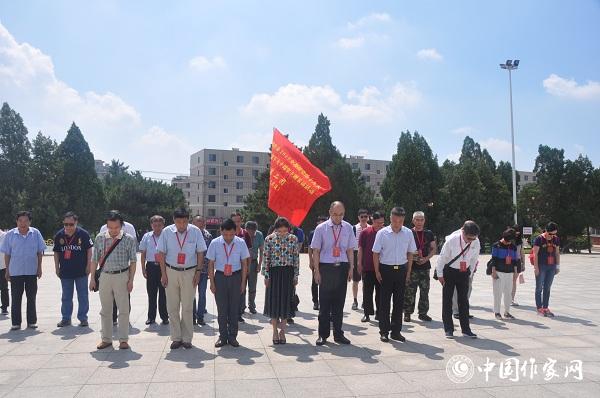 采访团来到塔山烈士陵园,并向烈士默哀 摄影:樊金凤