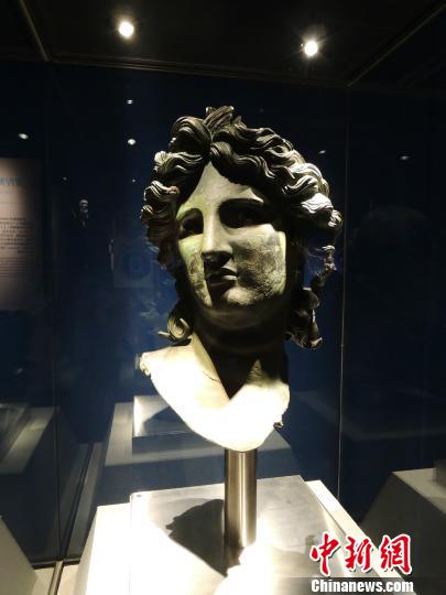 图为青铜阿波罗头像,是意大利国宝级文物。意大利文博专家称阿波罗青铜头像是1930年12月渔民在意大利萨勒诺海湾捕鱼时发现的。按比例推测,它应是一座大型雕像的头部。可惜的是,该雕像身体部分至今尚未被发现。 钱涛 摄