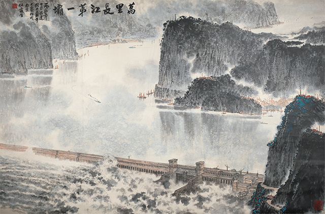 万里长江第一坝(纸本水墨)