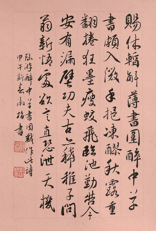 书法是中国文化的一种表达方式,文化是书法的核心。当代人往往过于注重书法的视觉感受和技法的操练,而文学的滋养、文化的传承、心灵的寄托等深层本质的东西恰恰被忽略了。为学心难满,临池影不孤。刘淑梅说:“一切艺术的滋养离不开读书,惟读书才能使艺术之路走得更加久远。”因此,她在求学之路与艺术之路上齐头并进,同时博览群书,研修了国学和书法美学,并在闲暇之余进行文学创作,写了大量的诗文随笔,使其诗情自然与书意相互滋养,从而提升了书法作品的格调。这些都为她的书法艺术奠定了坚实的内功。