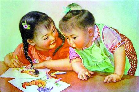上海文史馆的《问水听山》,是张大昕的山水画展览,而在八号桥举办的《时光镜影》是张弛与父亲的跨时空对话。当年父亲画年画时,总是喜欢让张弛当模特,所以许多作品中都留下了张弛童年的形象,如今,这个《咯咯鸡》里的小娃娃已经长大,也成为和父亲一样一心手执画笔的人。这样一段超越时光的心灵之旅,想必会让每一位观众都心有所感。