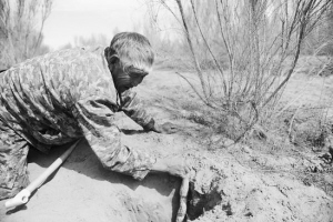 阿拉善左旗一名工人在收获沙漠肉苁蓉。 邓华摄