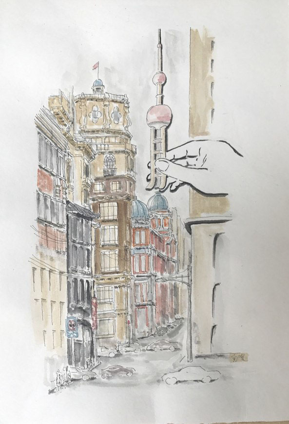 以前我读瑞金路民办小学,老师是家庭妇女,条件差,上课很不好玩。因此我常常逃学,带一根大铁钉,每天顺陕西南路凡尔登花园围墙一路走、一路划出一道深痕才满足。当时流行“刻蜡纸”,我喜欢自己画,拿到新课本,喜欢立刻把“语文”“数学”标题改成立体字……后来去黑龙江下乡,才在信里认真画图,“野生”画法,北方的房子、火炕、厕所,甚至砖墙砌法花样,都与南方不同,图画有效果。