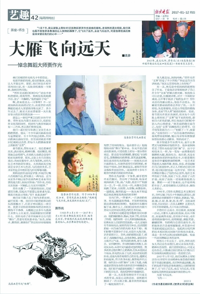 10月6日,俄语翻译界的泰斗,《保尔·柯察金》、《安魂曲》的译者,91岁的著名作家、画家高莽先生逝世。今年1月12日,高莽先生还为本报留下绝笔——缅怀著名舞蹈家贾作光先生的整版悼文《大雁飞向远方》,为读者留下向真、向善、向美的精神力量。因为夫妇都属虎,高莽戏称自己的家是“老虎洞”。去年4月,本版编辑随著名作家、画家鲁光先生走进“老虎洞”。高莽老为好友鲁光画像,鲁光为高莽赋诗,谈笑风生、智慧风趣。这难忘的相聚,被鲁光先生写进《高莽 老虎九十不出洞》,刊发于去年6月30日的《北京晚报》。不料,这一面,也成为他们的永别。10月7日,噩耗传来,鲁光先生熬通宵写成此文,为老友高莽送行。