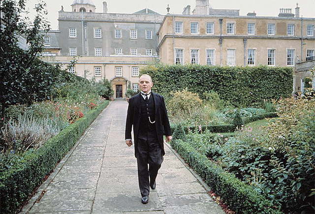 在《告別有情天》前,导演伊沃里已有《窗外有蓝天》和《此情可问天》等名作,围绕一座大宅和几个老派的英国人,炮制矜持克制的英伦古典味儿,简直是这位导演手到擒来的看家本事。达林顿府作为谈笑皆权贵、往来无庶人的“大转轮之中心”,在电影中被拍出了鲜花着锦、烈火烹油的排场,尤其是宴饮场面、精致的布景和服装道具,都看得到拍摄经费在燃烧。
