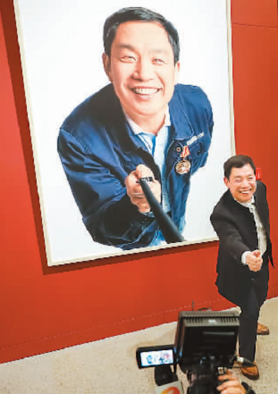 Öйú¹ú¼Ò²©Îï¹Ý¾ÙÐС°ß£ÆðÐä×Ó¼ÓÓ͸ɡª¡ª¡®ÖйúÃΣ¬ÀͶ¯ÃÀ¡¯¡±Ó°ÏñÕ¹¡£Í¼ÎªÐ»×ÓÁúÔÚ×Ô¼ºÐ¤Ïñ×÷Ʒǰ¡£ лªÉç¼ÇÕß Éò²®º«Éã