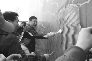 王文彪和孩子们一起让画布上的沙漠变成绿洲。魏宝红摄