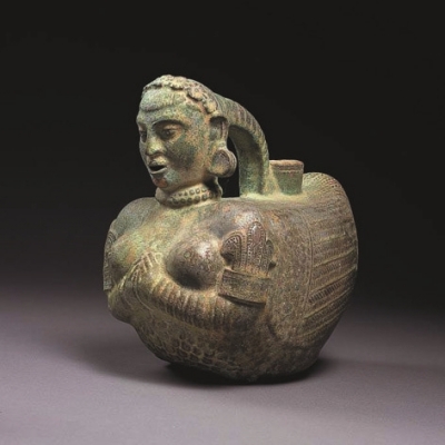 人面鸟身绿釉壶,公元1世纪