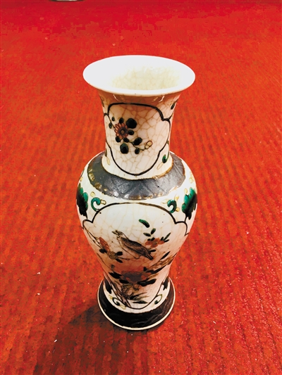 “海外回流”藏品近几年渐成气候,深圳也不例外。市民朱小姐带来了一件从英国买回来的瓷器——清光绪“铁箍泥五彩开光花鸟纹观音瓶”;藏友王先生也拿来了两件从美国带回来的“宝贝”——清晚期“广彩盖盒”和“广彩碗盏”。