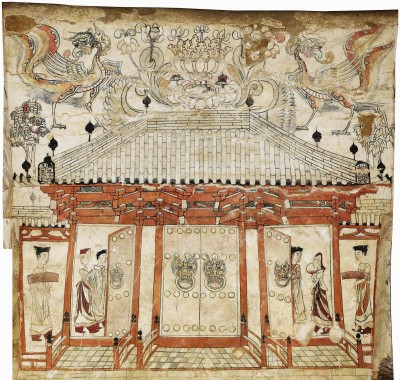 壁画墓中最引人注目的画迹,是一座规模宏大的木结构建筑。在此之前,我国有详细图像记载的建筑最早只能追溯到唐代,这幅壁画详尽地展示了北朝建筑样式,可以说是突破性的发现。