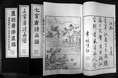 昨天,16开线装、全一函四册的《重刻唐诗画谱》正式面世,该书共印500套,其中蓝印本100套、红印本200套、黑印本200套。这也是《唐诗画谱》自明万历年间问世以来,400年之后的首次重刻。