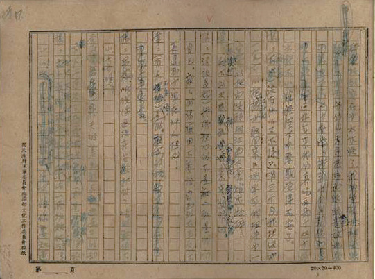 整篇手稿用蓝色钢笔写在20×20的方格稿纸上,稿纸纸张粗粝,与电竞竞猜对战时重庆的物资供给情况的想象一致。整本手稿共计215页,有修改痕迹。修改明显可以分成前期和后期两个阶段,以蓝色与黑色字迹相区分。阳翰笙的笔迹稍显潦草,显出为创作激情驱使而奋笔疾书的战斗状态。