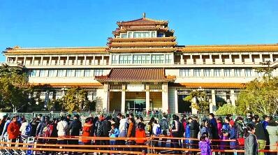 中国美术馆门口排队的观展群众。马力摄/光明图片