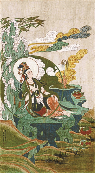 为市场唯一仅见的工笔重彩勾金水月观音
